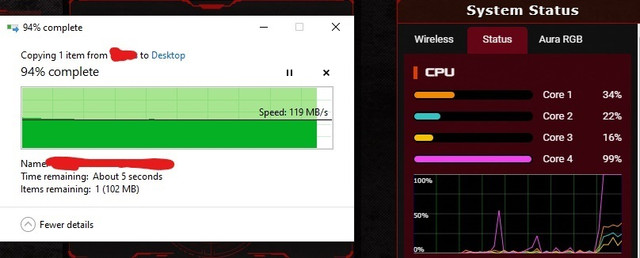 Whenever I copy files from usb 3.0 attached Strix Arion SSD to my PC (using samba share) I only get speeds up to 122 MB/s.