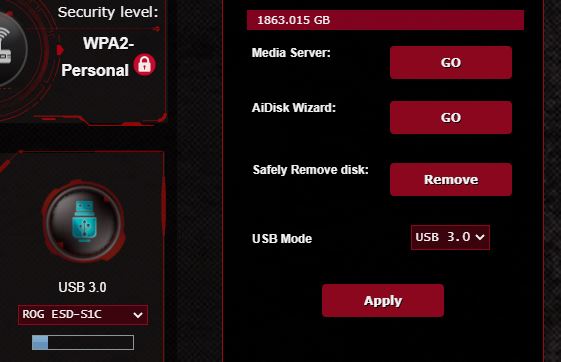 I have connected a Strix Arion enclosure with 2TB Kingston NV1 SSD x4 M.2 2280 to my Asus GT-AX6000 router using usb 3.0.