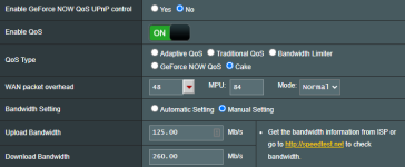 I am running a ASUS RT-AX86U via fiber connection with 330mbit/s download and 112mbit/s download.