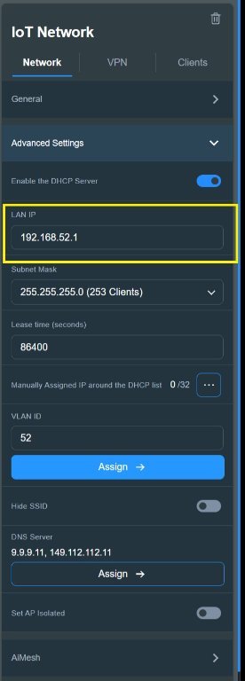 Edit to add: Example GNP IoT profile's advanced settings attached showing the profile's LAN IP option and enable DHCP server option.