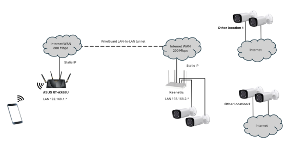 Recently I've discovered that the problem with viewing video from TP-LINK Tapo IP-cameras is related to the WireGuard tunnel: when WireGuard tunnel between ASUS RT-AX88U and another router (Keenetic in my case) is up, then Tapo app (it is the app to control various TP-LINK devices and view IP-cams) on a device in ASUS network (smartphone or tab) cannot open video from remote IP-cameras located in various locations (it continuously tries to start it, understanding that the device is online, but without success).